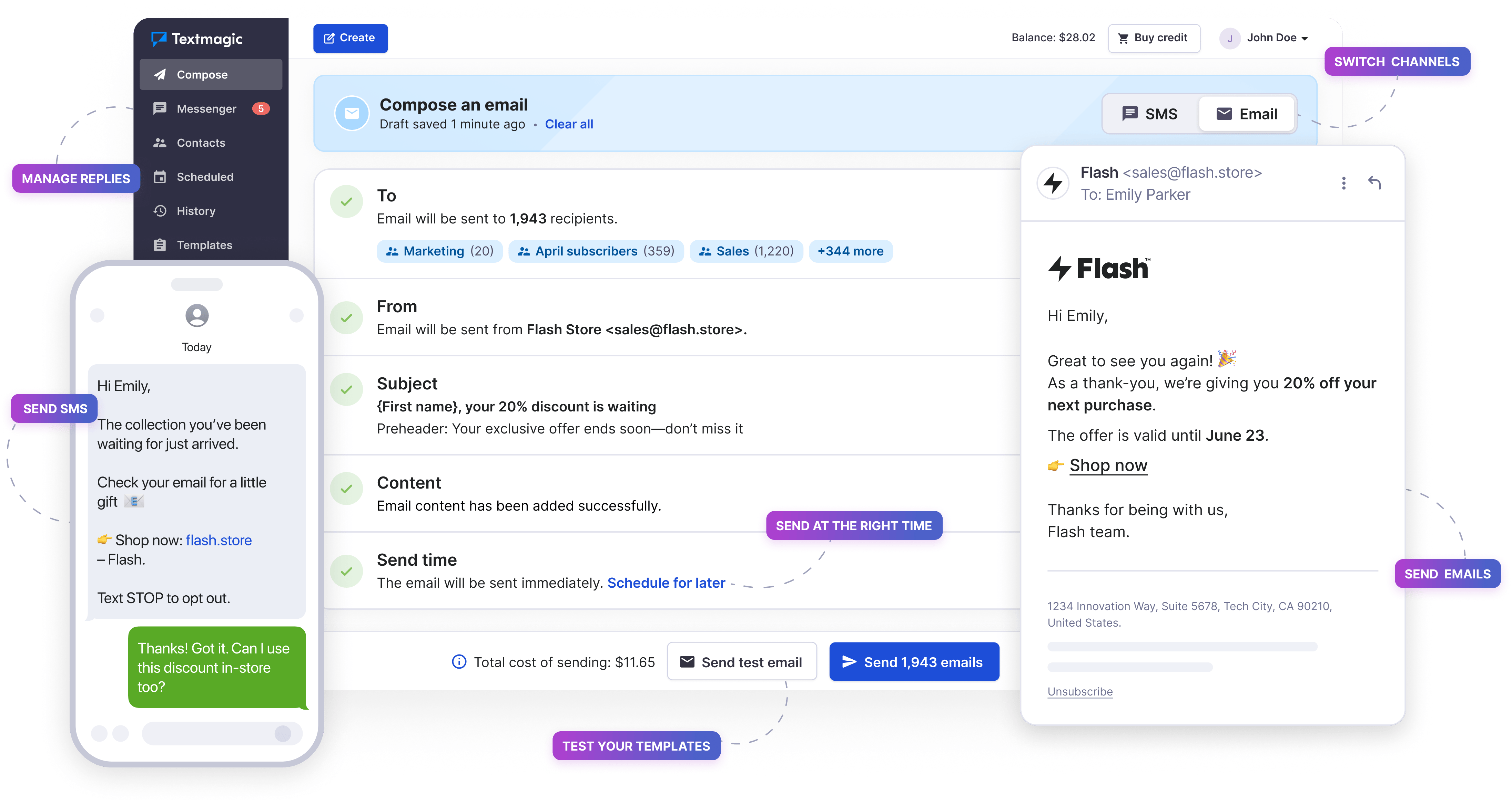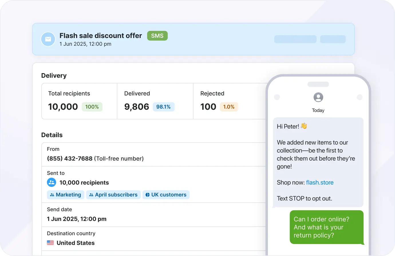 - Send mass text campaigns