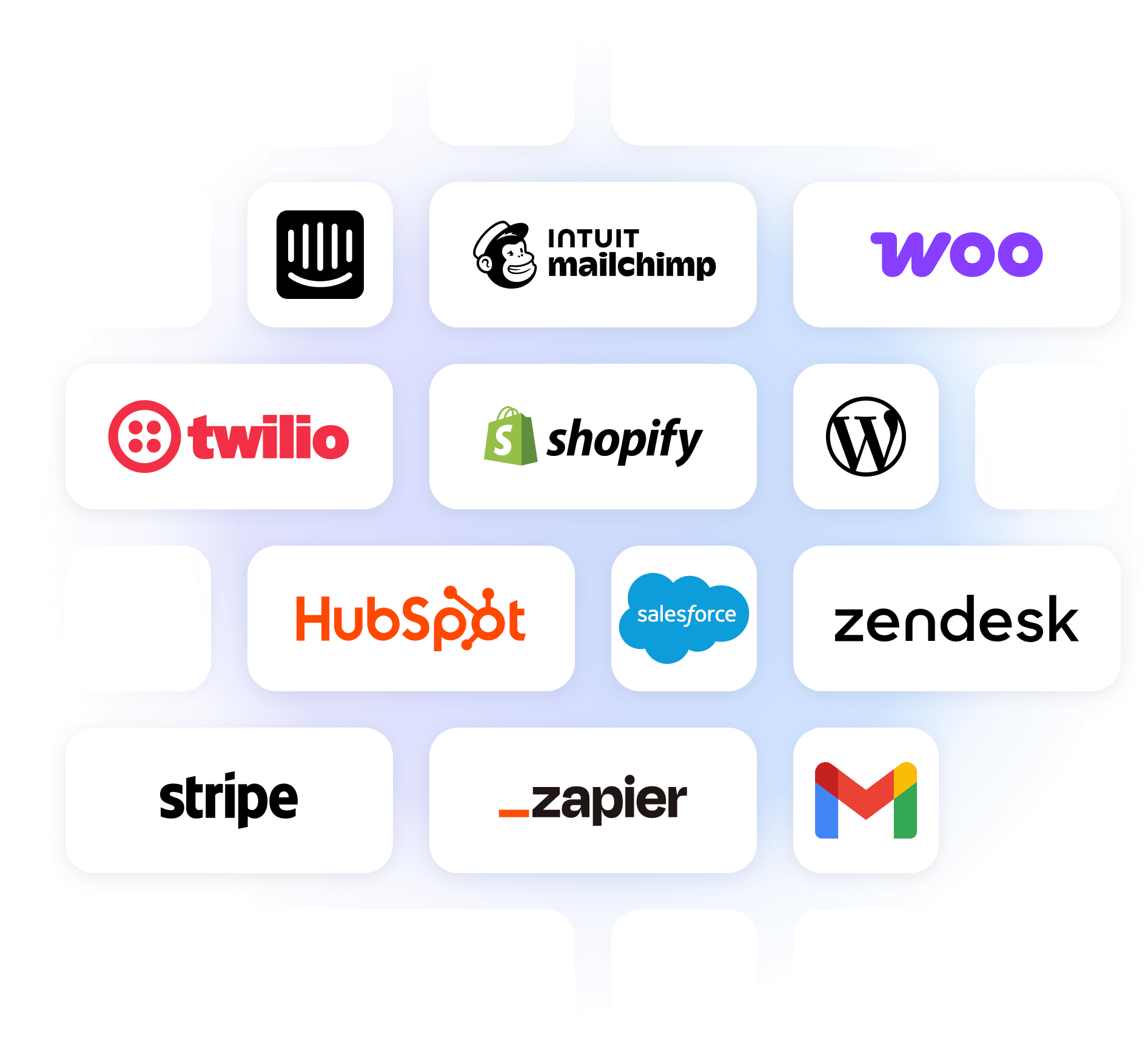 Integrate with the tools you already use – CRMs, eCommerce platforms, and more. Sync data, send messages, and automate workflows in minutes.