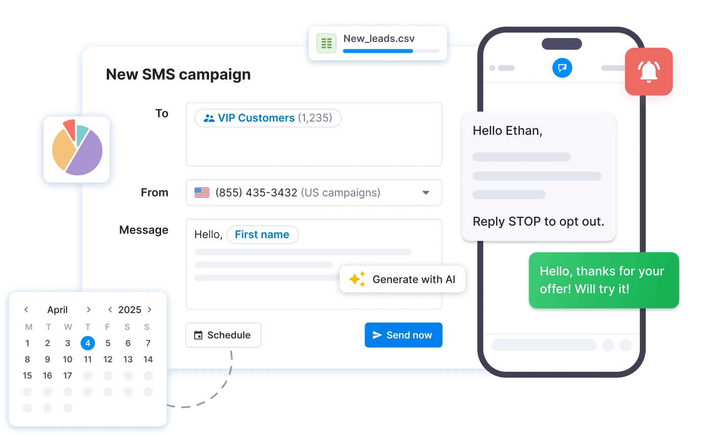 - Scheduled & recurring texts