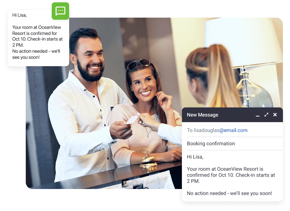 Notify guests instantly about check-in times, special offers, or last-minute booking changes.
